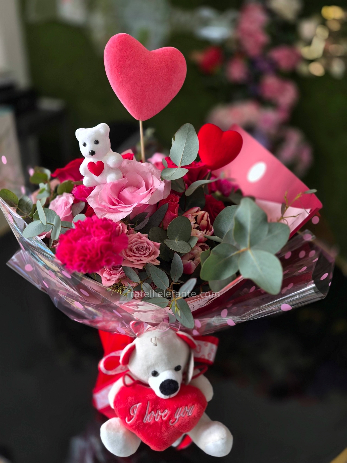 Bouquet love rose rosse - rosa + mix fiori con Riserva d´acqua
