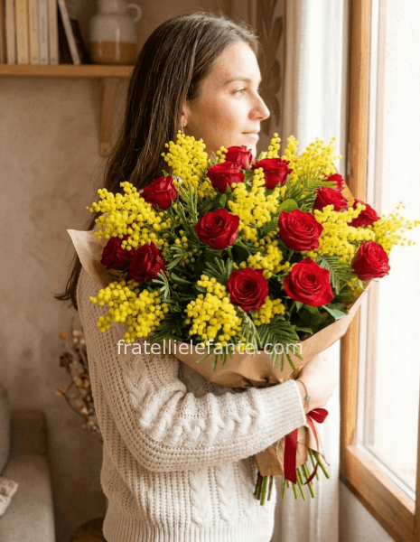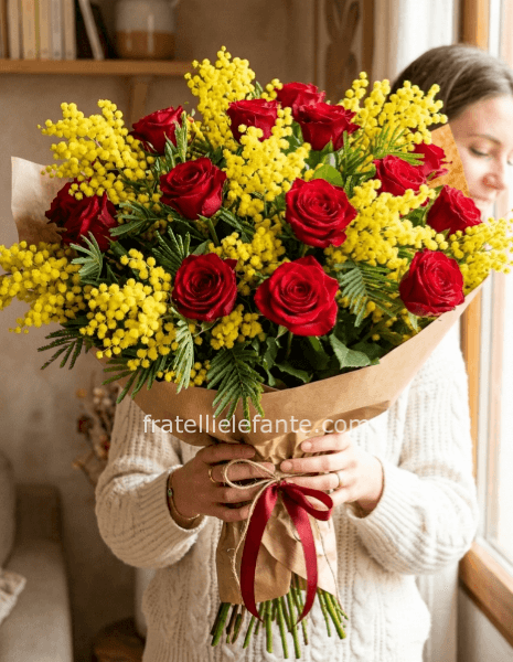 Scopri l'eleganza delle nostre 'Rose ROSSE e MIMOSA', un prodotto artigianale di alta qualità, disponibile nel tuo Fiorista Castellammare di Stabia.