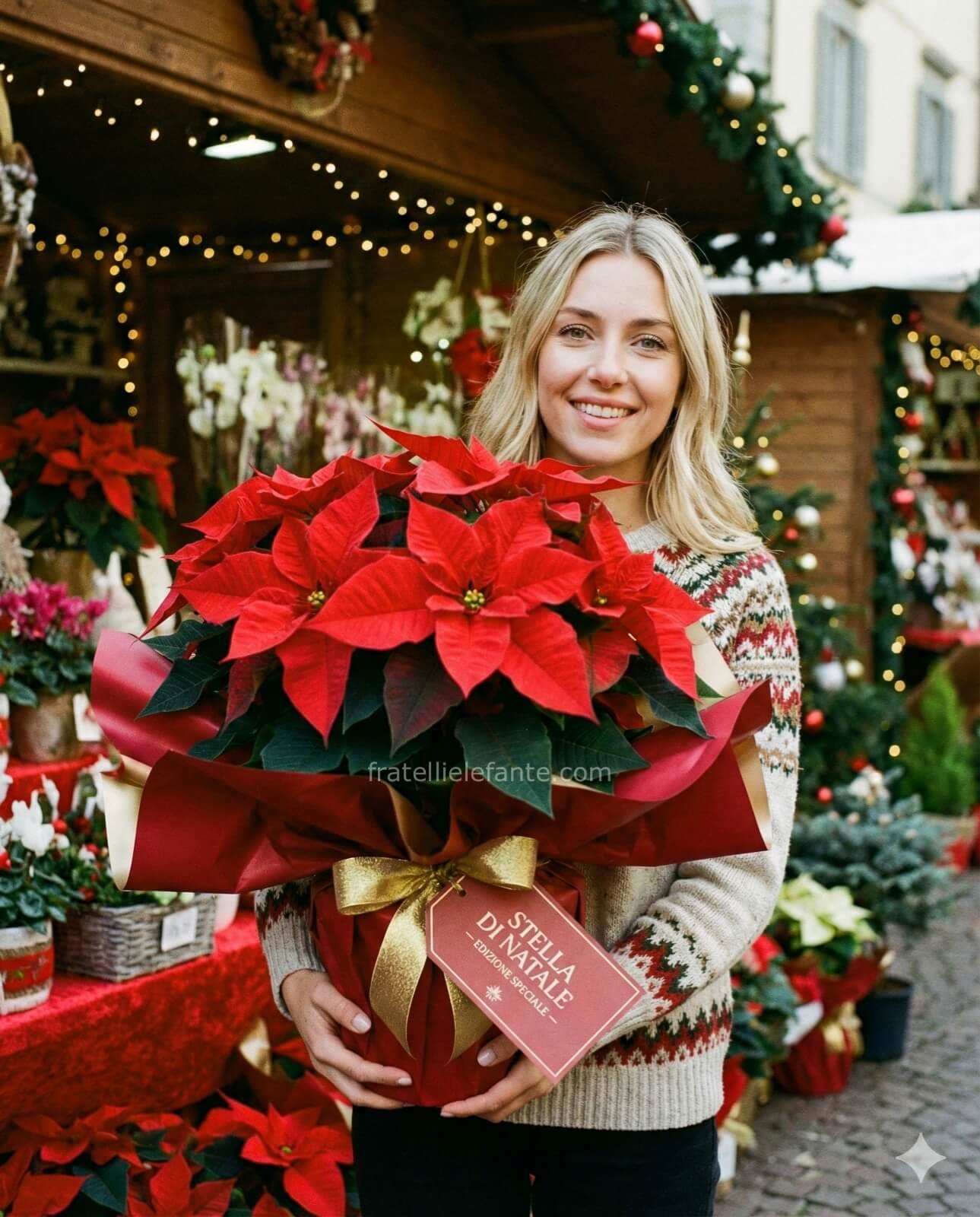 Scopri la nostra 'Stella di Natale rossa', un'esclusiva del nostro fiorista a Castellammare di Stabia. Questa pianta, simbolo di festività e amore, è realizzata con una qualità artigianale che la rende unica.